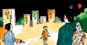 অবাক হয়ে বড়রা দুধের বাটির মতো আকাশে চাঁদ আর ঘুড়ির লড়াই দেখতে থাকেন।