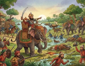 ‘বখতা’ শুঁড় তুলে একের পর এক আহত করতে লাগল। ‘শের ময়দান’ ছুটে গিয়ে শত্রুর ঘোড়ার বর্ম ভেঙে দিল। যুদ্ধক্ষেত্র কেঁপে উঠল। পিছিয়ে পড়তে লাগল মোগল বাহিনী ।