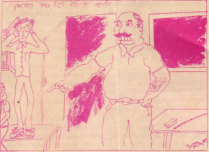 শিশির, রুমন, টিনু, সজীব বেঞ্চের উপরে দাঁড়িয়ে পড়ল। স্যার খাতা দেখা শেষ করে ওদের কাছে গেলেন। স্যার মারার আগে কৈফিয়তের সুযোগ দেন। প্রথমে গেলেন রুমনের কাছে।