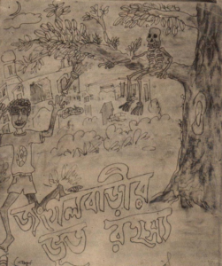সেই রাতে ছেলেরা ভয়ে ভয়ে ঘুমুতে গেল। খাটে পা দুলিয়ে বসতেও যেন সবার ভয়। গ্রামের বাড়িতে সাধারণত যা হয়, এখানেও তার ব্যতিক্রম হল না। টয়লেট অনেক দূরে। শিপলু রাতে ঘুমানোর আগে টয়লেটে যায়। কিন্তু কেন জানি ওর মনে হচ্ছে আজকের রাতটা অনেক বেশি অন্ধকার। সবাই শুয়ে পড়েছে। রানা, মিঠুর গলা শোনা যাচ্ছে। শুয়ে শুয়ে গল্প করছে সবাই। শুধু শিপলুর চোখে ঘুম নেই। টয়লেট না সারতে পারলে এই গভীর রাত ওর জেগেই কাটাতে হবে। কাউকে বলতেও পারছে না। এ কথা জানাজানি হলে নির্ঘাত রানা কোনো ছড়া বানিয়ে ফেলবে। ছড়া লেখায় ব্যাটার হাত দারুণ পোক্ত। যে কোন বিষয় নিয়ে ছড়া বানিয়ে ফেলে। সাক্ষাৎ কবিয়াল! টয়লেটে না যেতে পারার সব ক্ষোভ গিয়ে পড়ছে রানাটার উপর। এখন লজ্জায় কাউকে বলাও যাচ্ছে না। কাউকে যে বলবে সে পরিস্থিতিও নেই। কে কোথায় বিছানা করে ঘুমিয়েছে তা বুঝা যাচ্ছে না। শিপলু মনে সাহস সঞ্চয় করে পকেট থেকে টর্চ বের করে বাথরুমের দিকে একাই রওনা দিল। দূর, কি আর হবে? ছোটবেলায় দাদু একটা কথা বলতেন, বনের বাঘে খায় না, মনের বাঘে খায়।