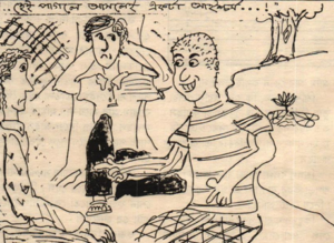 সকালবেলা সবাই গোল হয়ে রানার নতুন ছড়া শুনতে বসেছে। যা ধারণা করা হয়েছিল তাই ঘটেছে। রানা শিপলুকে নিয়েই একটা ছড়া লিখেছে। ছড়া তো নয়, যেন মহাকাব্য, শিপলুর আর সহ্য হচ্ছে না। ও উঠে বারান্দাঘরে গিয়ে বসল। এখান থেকেও রানার লেখা ছড়াটা শোনা যাচ্ছে। অজয় খুব সুন্দর করে আবৃত্তি করছে।
